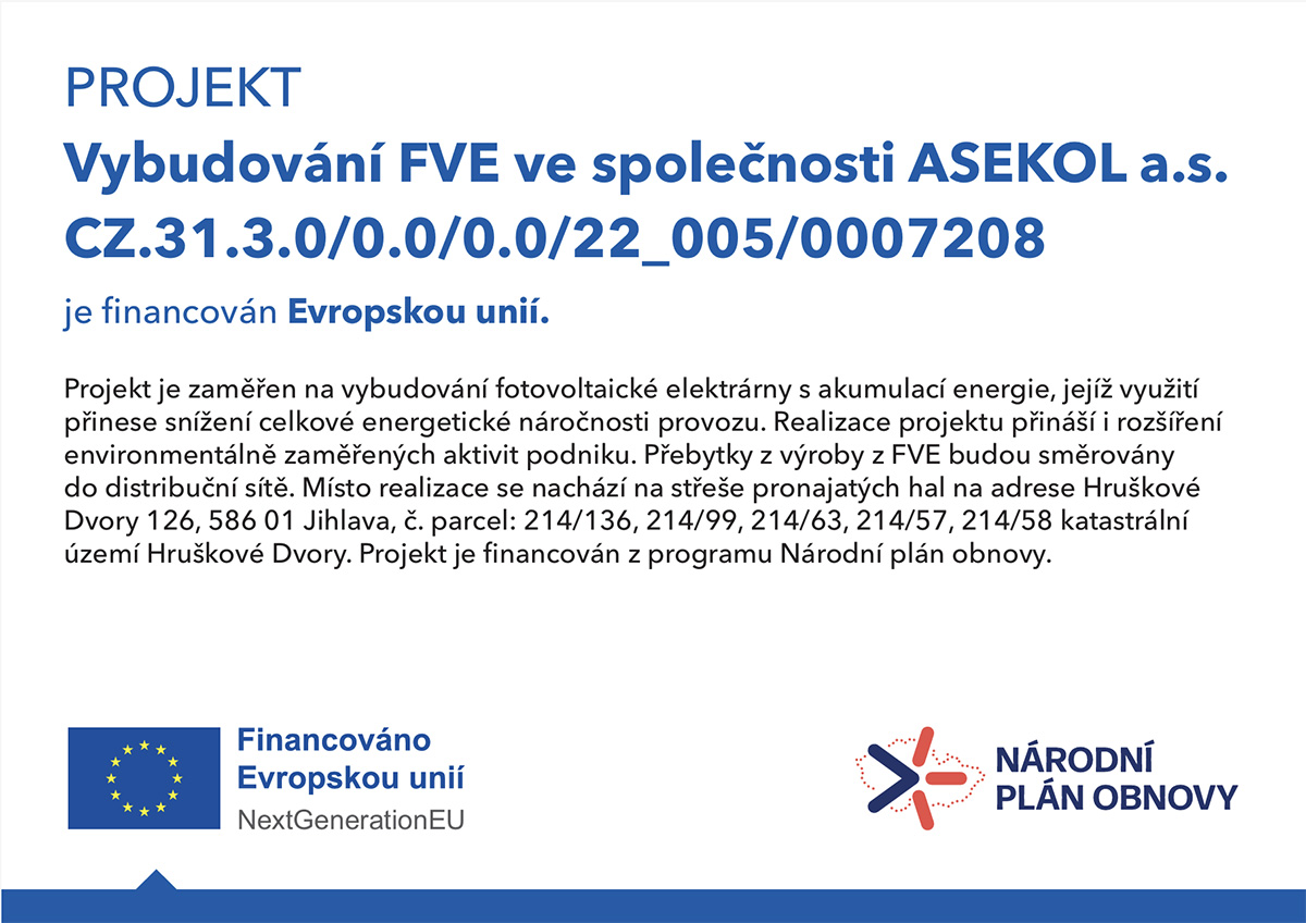 Společnost ASEKOL a.s. zřídila v souladu se zákonem č. 171/2023 Sb., o ochraně oznamovatelů, ve znění pozdějších předpisů (dále jen „zákon o ochraně oznamovatelů”) tzv. vnitřní oznamovací systém. Vnitřní oznamovací systém slouží k oznamování protiprávního jednání.
